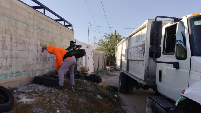 La Dirección de Limpia del Gobierno Municipal atendió la petición que hicieron habitantes de la colonia Anáhuac para retirar llantas que se encontraban en la vía pública y este día recogieron decenas de ellas que se encontraban en las calles Villa López y Cusihuiriachi.