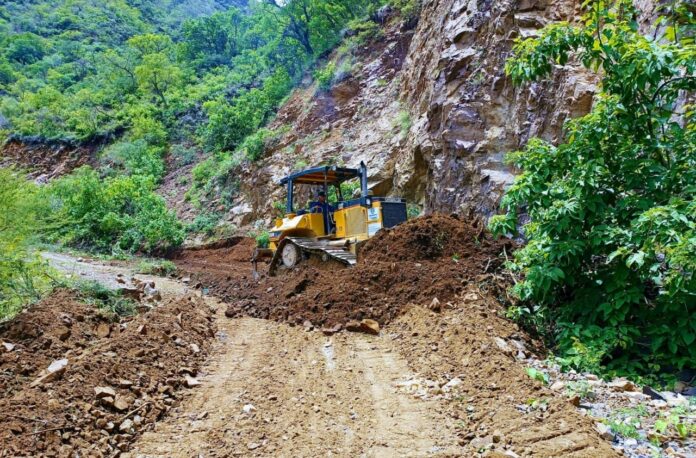 Guadalupe y Calvo. – Gobierno del Estado, a través de la Secretaría de Comunicaciones y Obras Públicas (SCOP), avanza en el desbloqueo del camino que conduce de Baborigame a Río Güerachi, justo en el tramo Cumbre de Caballo Prieto a Río Güerachi, mediante el retiro de materiales como tierra y rocas, que se acumularon con motivo del deslave ocasionado por las fuertes lluvias.