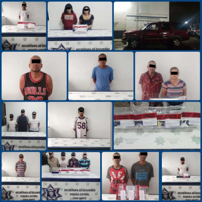 Ciudad Juárez.- La Secretaría de Seguridad Pública del Estado (SSPE), a través de la Subsecretaría de Despliegue Policial y la Subsecretaría de Estado Mayor, realizó un operativo especial en Ciudad Juárez el que, en 24 horas, se detuvieron 19 personas por encontrarles porciones de droga, contar con órdenes de aprehensión vigentes y por maltrato infantil.