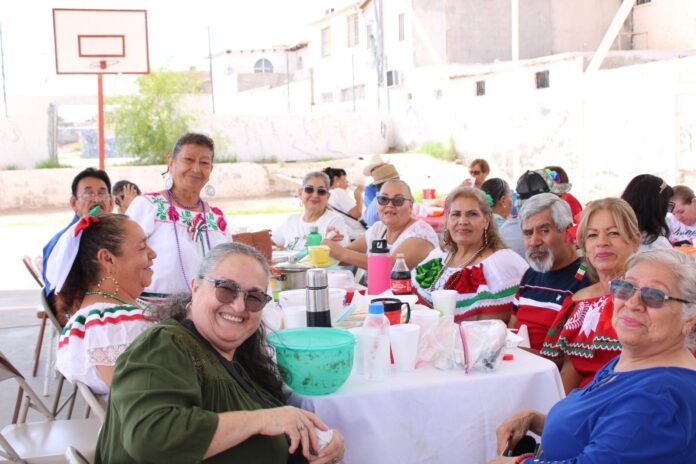 El director de la Coordinación de Atención Ciudadana del Suroriente, Víctor Mario Valencia Carrasco, acudió al festejo por las fechas patrias que organizó el Consejo del Adulto Mayor, encabezado por Sara Ortiz.