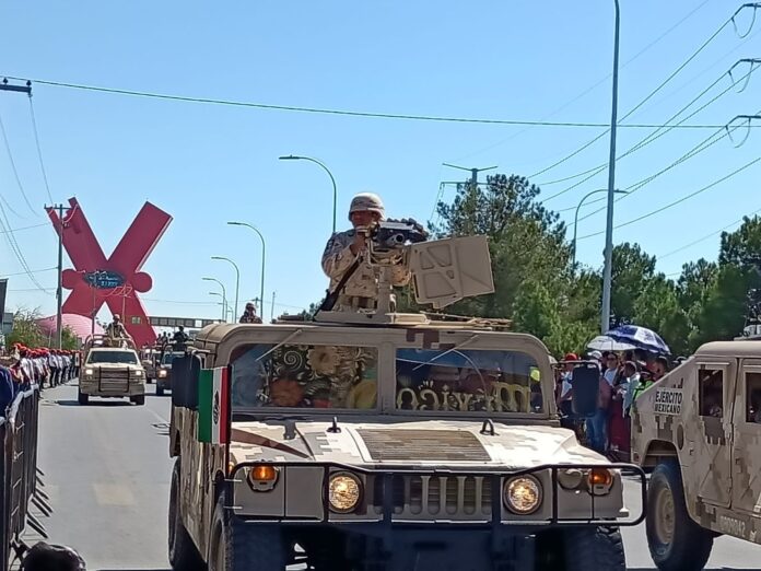 Encabezado por el presidente municipal, Cruz Pérez Cuéllar, el desfile inició en la avenida Heroico Colegio Militar y Plutarco Elías Calles para concluir en el cruce de la 5 de Mayo a la altura de El Punto.