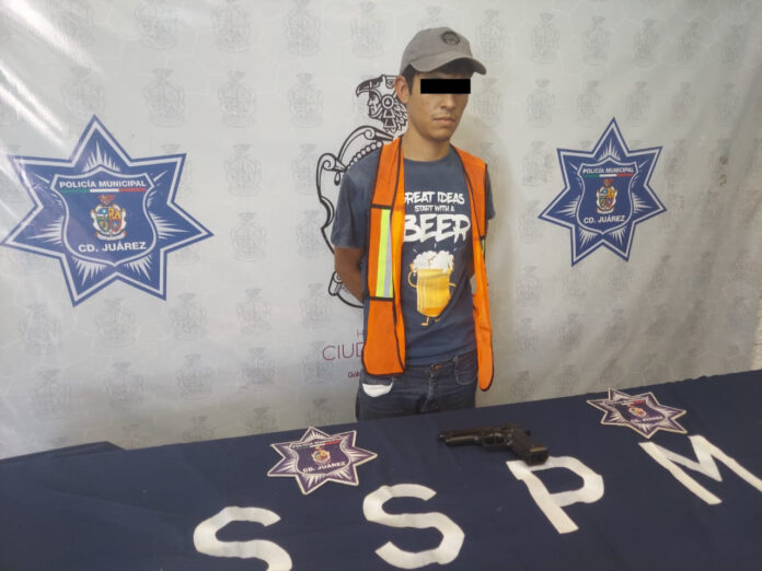 Ciudad Juárez.- Elementos de la Secretaría de Seguridad Pública Municipal arrestaron a Iván Rodrigo A. T., por su presunta responsabilidad en la comisión del delito de posesión de vehículo con reporte de robo.