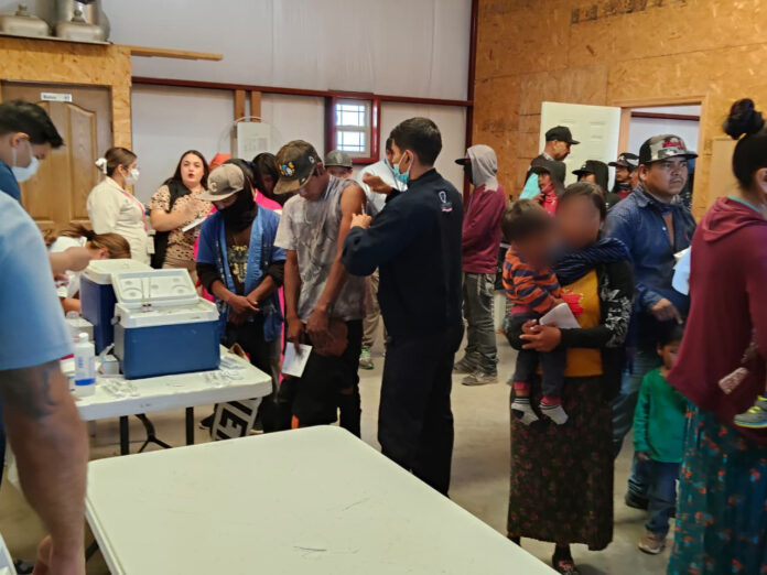 El Gobierno del Estado, a través de la Secretaría de Salud, en coordinación con la Secretaría de Pueblos y Comunidades Indígenas (SPyCI) y el DIF Estatal, entregó apoyos alimentarios en la comunidad El Oasis, en Ojinaga, donde también se aplicaron vacunas contra el sarampión.