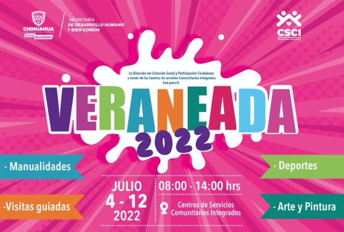 Chihuahua.- Con la finalidad de ofrecer una opción segura a las familias chihuahuenses para la ocupación de niñas y niños durante el periodo vacacional, la Secretaría de Desarrollo Humano y Bien Común (SDHyBC) invita del 4 al 12 de julio a la Veraneada 2022 en los Centros de Servicios Comunitarios Integrados (CSCI) de la ciudad de Chihuahua.