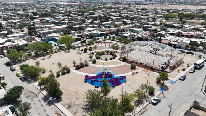 Avanzando en el mejoramiento de los espacios públicos en distintos puntos de la ciudad, la Dirección General de Obras Públicas trabaja en la rehabilitación del parque Paquimé, ubicado entre las calles Tribu y Artesano de la colonia Paquimé.