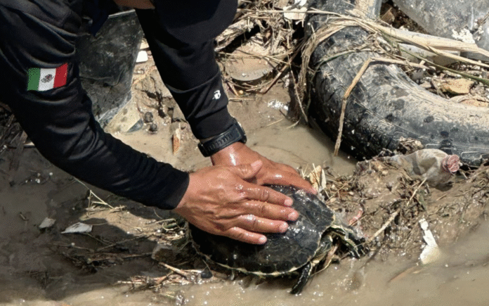 Elementos del Departamento de Bomberos de Ciudad Juárez, adscritos a la Dirección General de Protección Civil, realizaron el rescate de una tortuga mientras llevaban a cabo trabajos de desazolve en un pozo de captación, informó Sergio Rodríguez, titular de la dependencia.